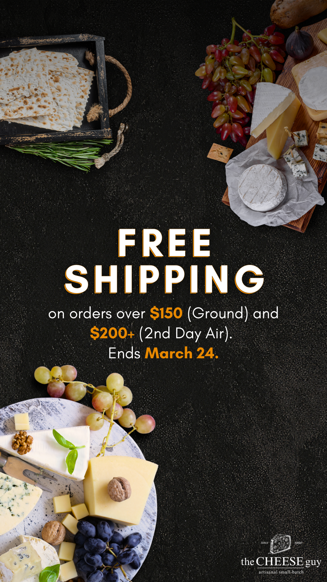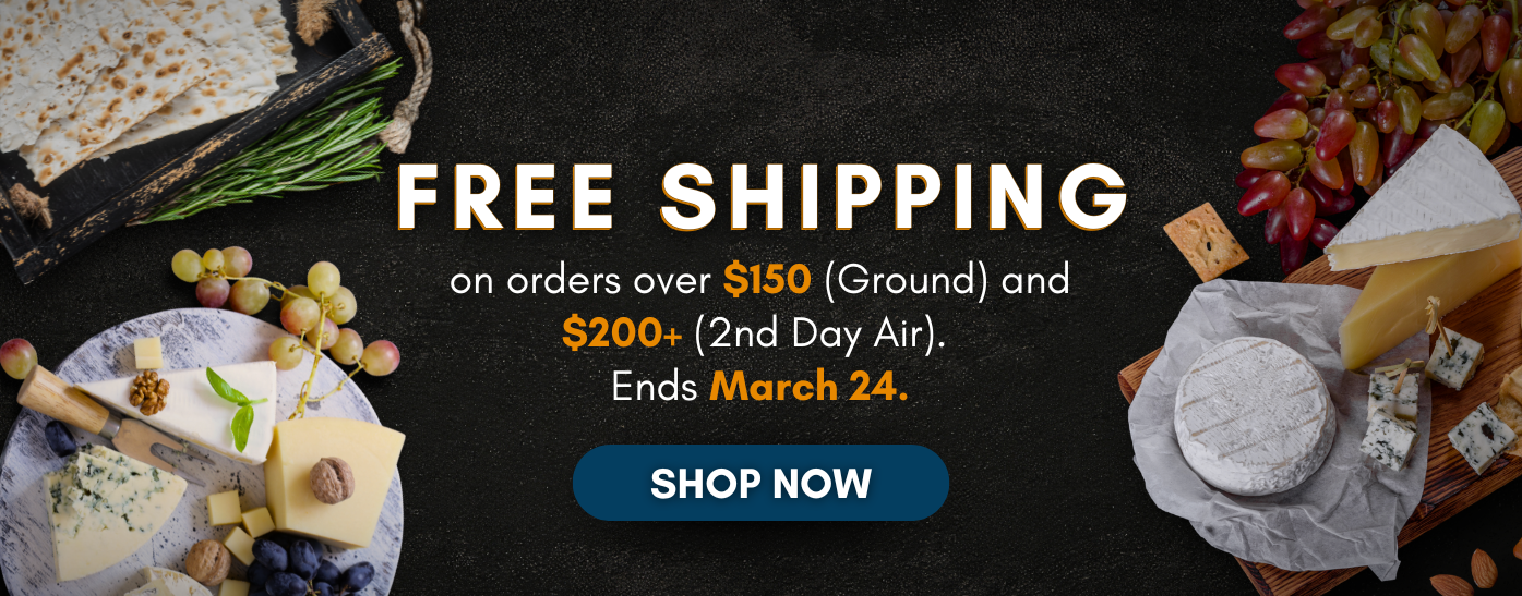 Celebrate Passover with exceptional flavors from The Cheese Guy. Our curated selection of kosher-certified cheeses brings elegance and tradition to your holiday table. Free Ground Shipping on orders over $150 and Free 2nd Day Air on orders over $200. Offer valid through March 24.