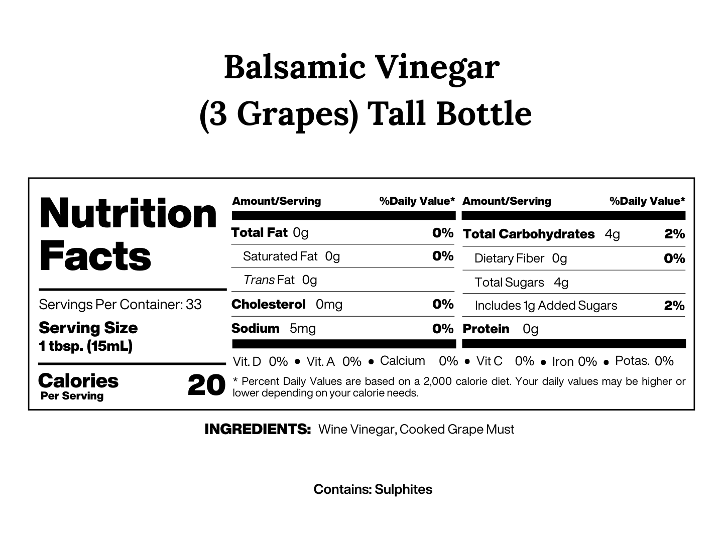 Balsamic Vinegar (3 Grapes) Tall Bottle