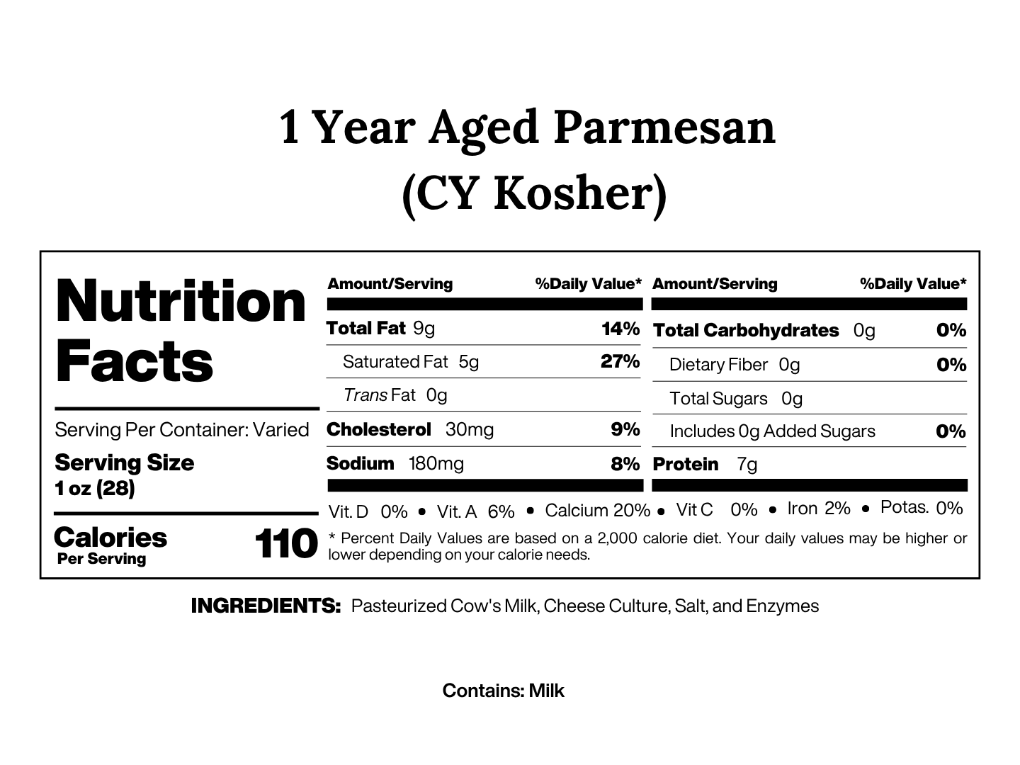 Home/Chalav Yisrael (Cholov Yisroel) "Super Kosher" Collection/1 Year Aged Parmesan (CY kosher)