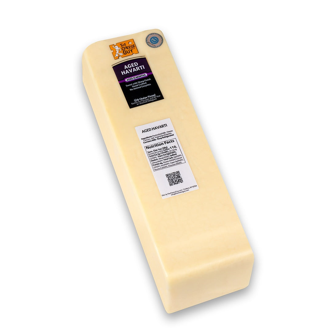 Introducing our exclusive creation, The Aged Havarti—a triumph of Cheese Guy craftsmanship. This Creamy Havarti undergoes a metamorphosis, aging gracefully for over a year to unveil sharpness and a tantalizing tangy kick. Handcrafted in small batches, this cheese is not just a testament to time but a celebration of artisanal excellence. Allow each bite to transport you into the realm of rich flavors and unique textures, where our commitment to quality and ingenuity shines through in every delectable slice.