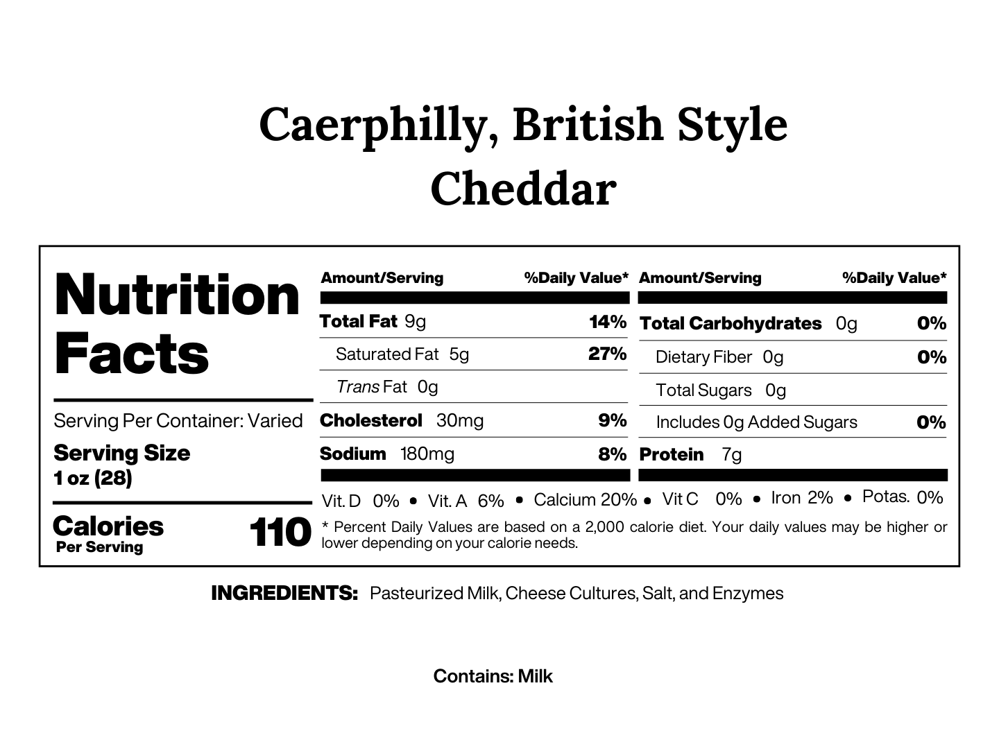 Ingredients: Pasteurized Milk, Cheese Cultures, Salt, and Enzymes